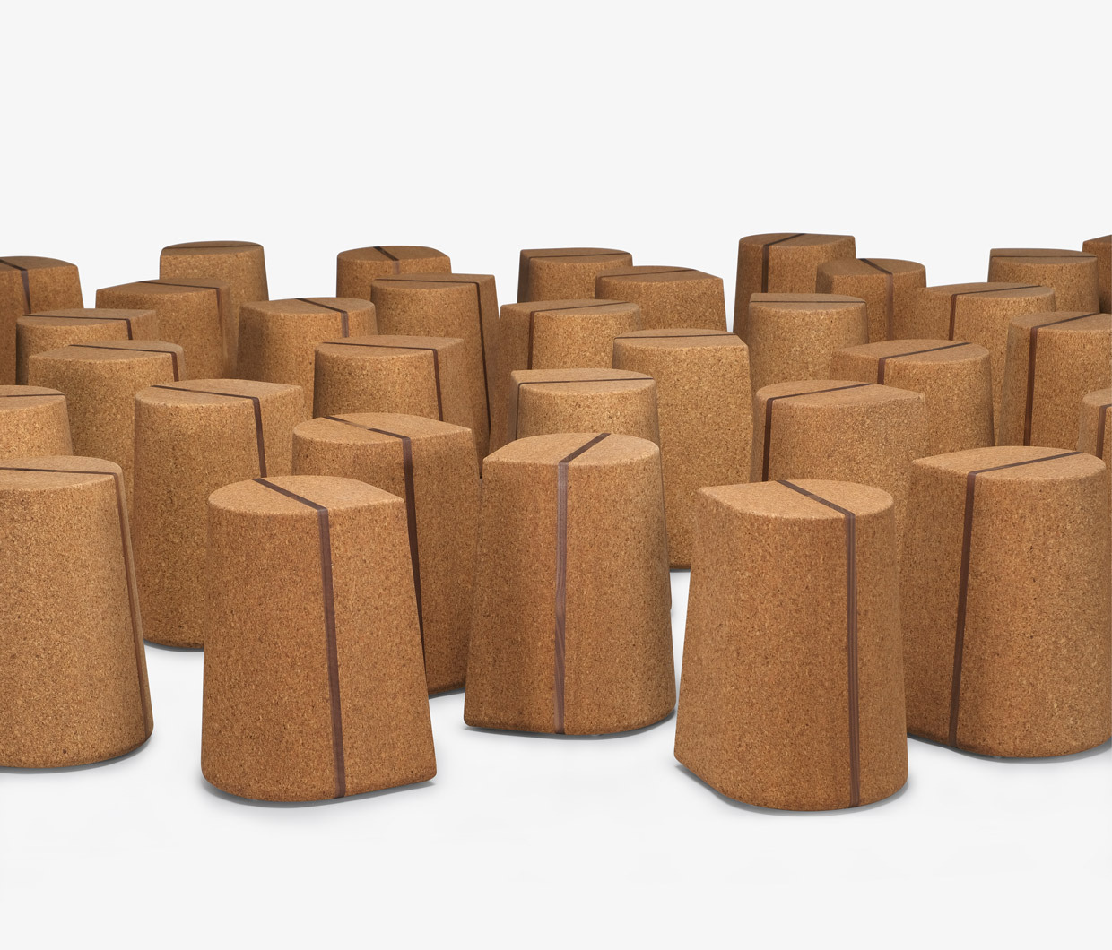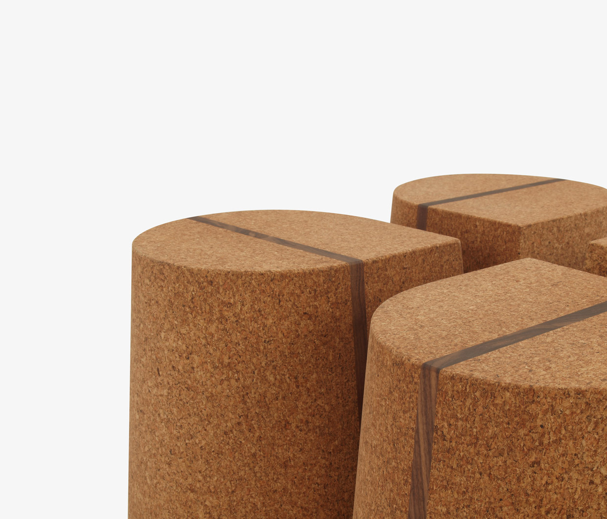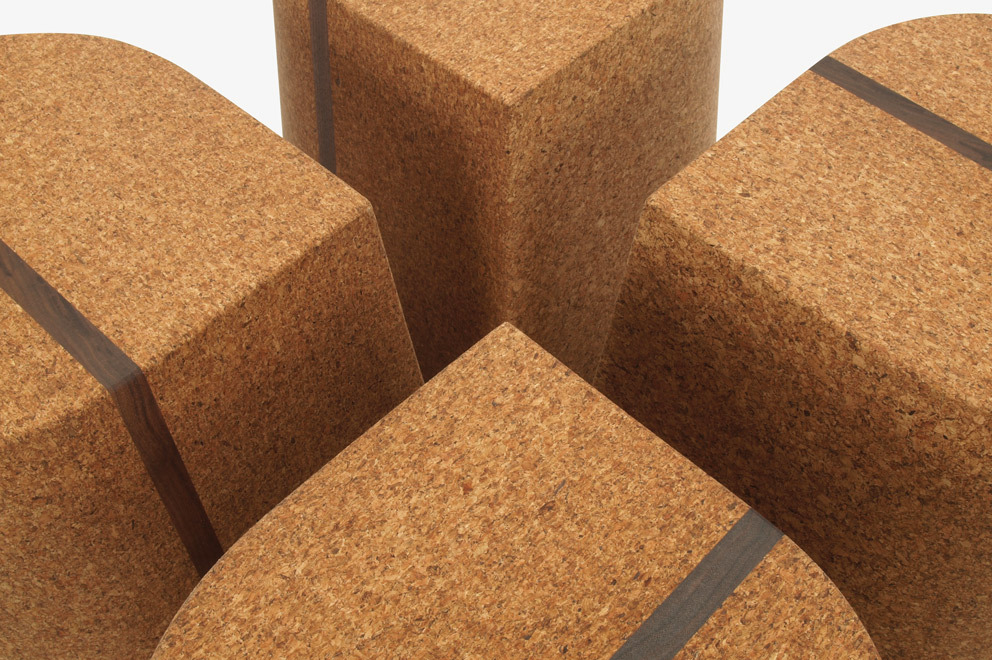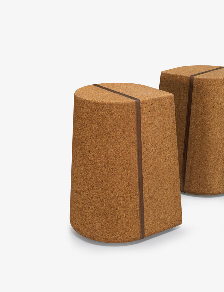 Corkdrop is a versatile stool/side table in solid high-density natural cork with a walnut insert detail. The product may be used individually or in groupings. Custom options may be available. Residential or contract use. Contact skram for outdoor use requirements.