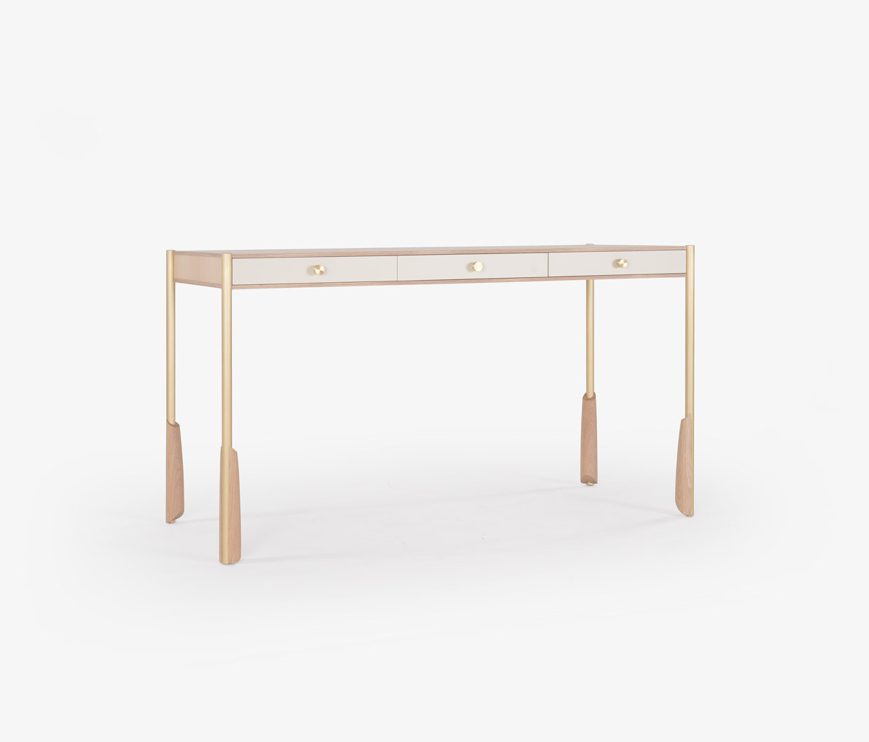 The altai apothecary desk is available in a variety of standard and limited edition veneer and metal finishes. Veneer work is hand-bookmatched. All edges are solid timber to match for added durability. Construction is mortise-and-tenon joinery throughout. 3 drawers–hand-fitted on traditional wood runners–in timber to match are standard. Skram no. 114 machined knobs are standard (matched to metal finish). Custom sizes, configurations, and materials are available. This product is suitable for residential or contract use.