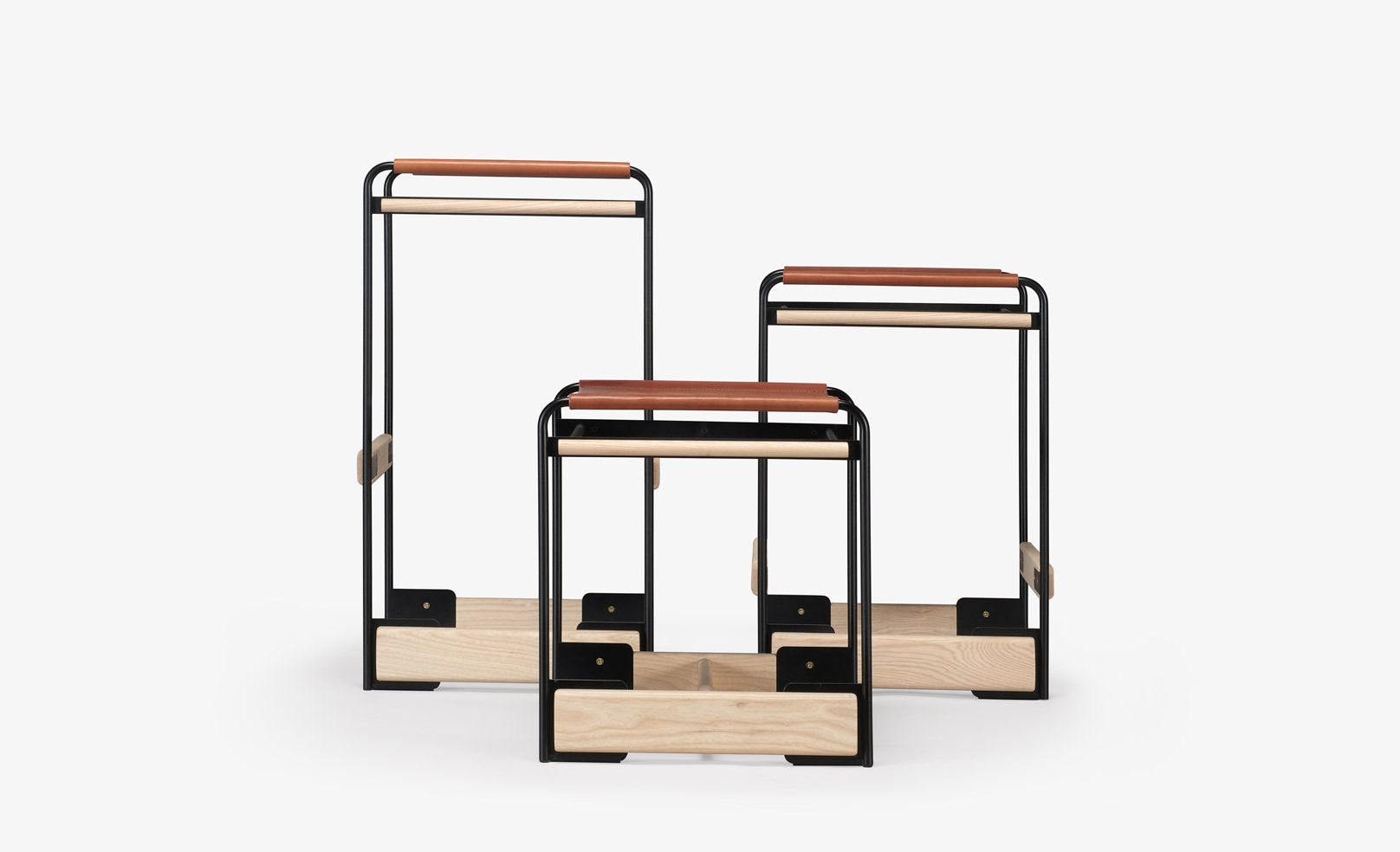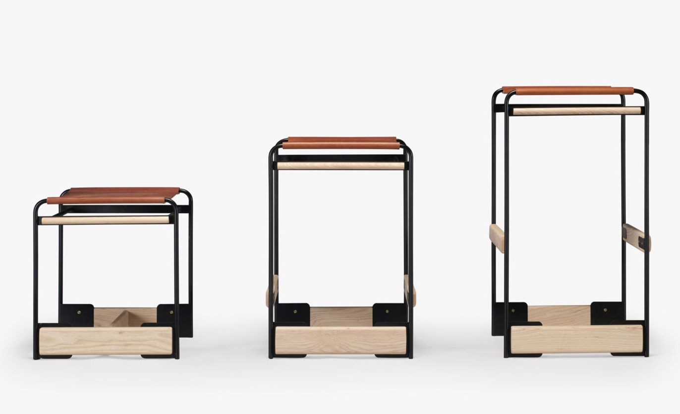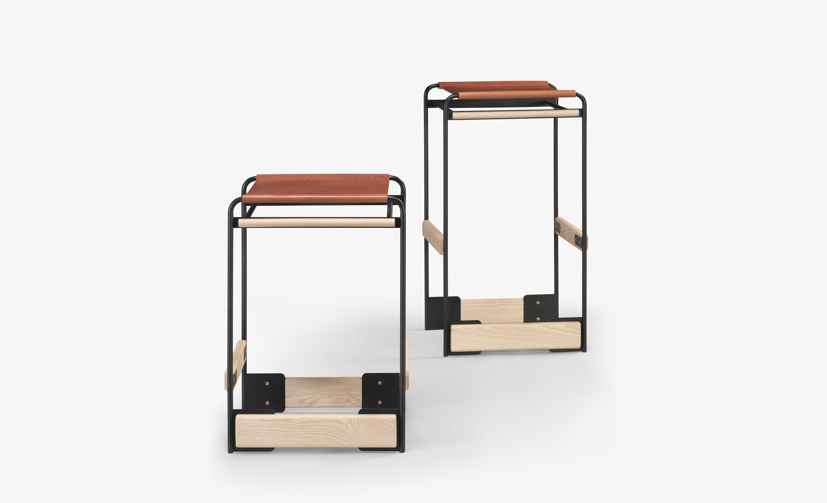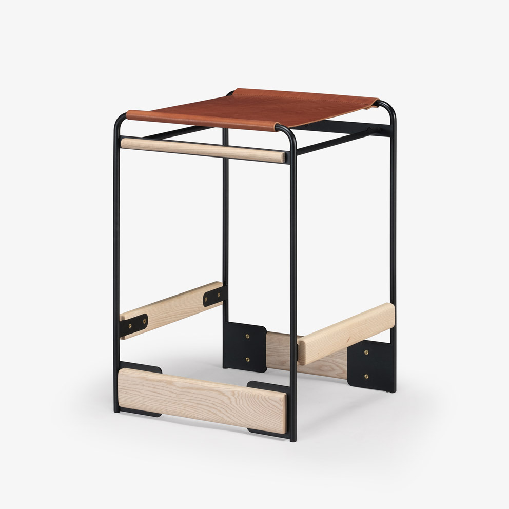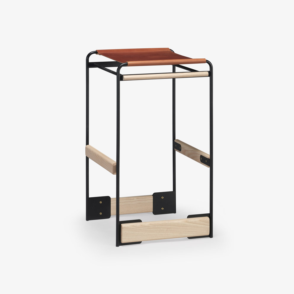 The piedmont no. 2 stool is a backless stool in steel and timber with a reinforced heavyweight leather sling seat. This product is offered in 3 standard heights for dining, counter, and bar applications. Clients may specify timber, sling seat, and metal materials/finishes from the options below. Custom options are available. Residential or contract use. Please contact skram for details regarding contract modified version of this product.