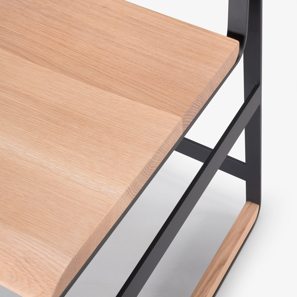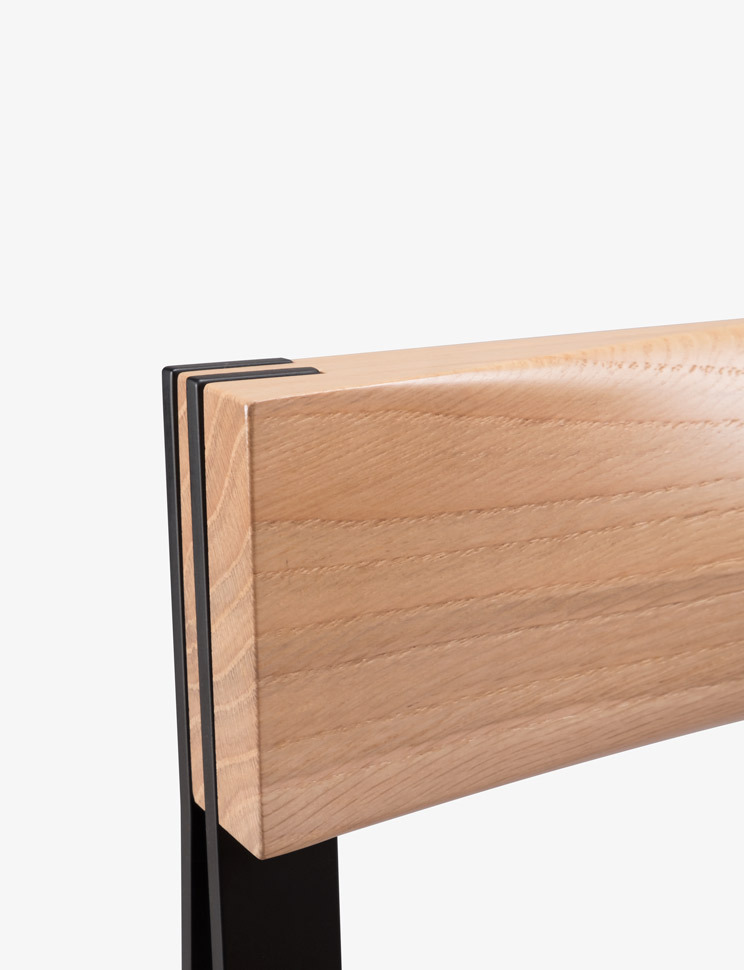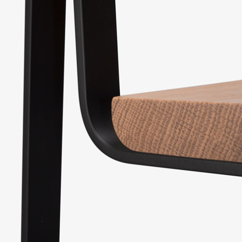 The piedmont collection no. 3 is a dining/side chair with a formed steel frame and carved solid timber seat and back. The product is ergonomically-tuned and features contract-grade materials, finishes, and engineering. Standard skram timber and metal finishes available. Custom materials and finishes also available. Residential or contract use.
