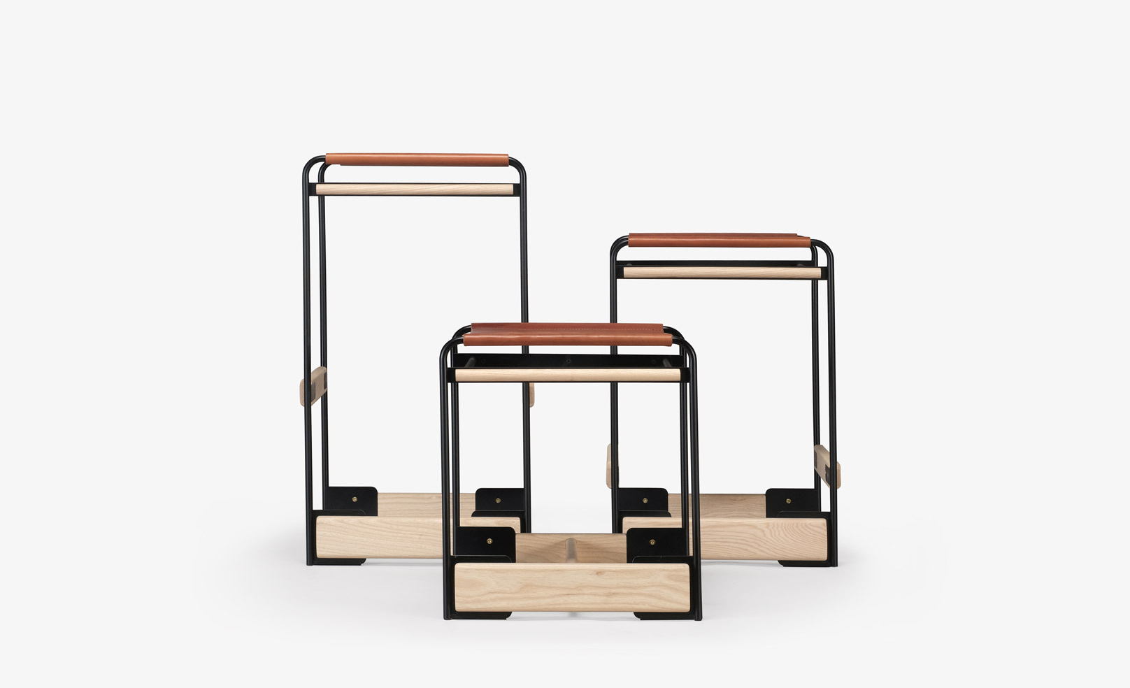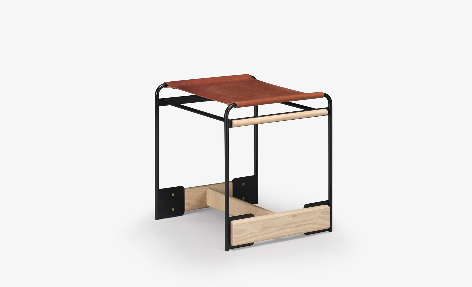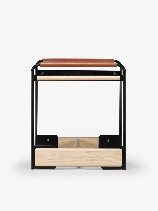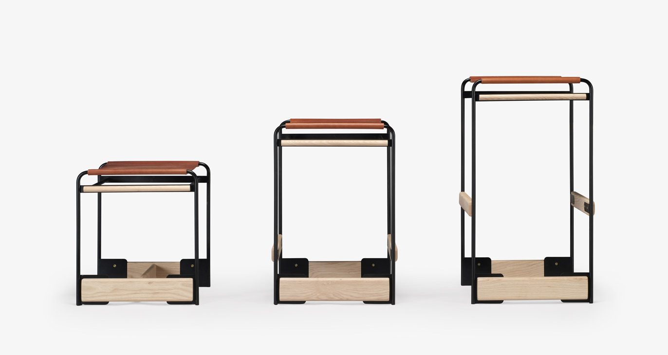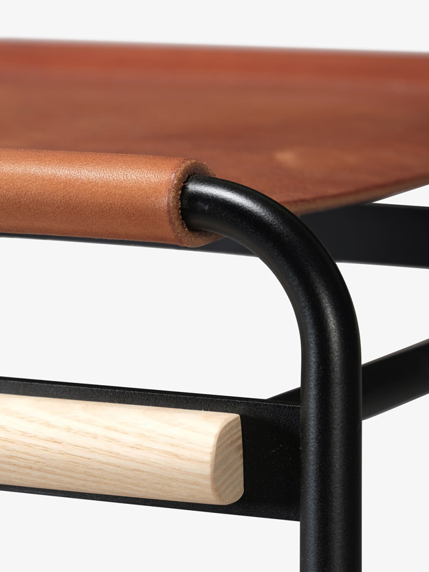 The piedmont no. 2 stool is a backless stool in steel and timber with a reinforced heavyweight leather sling seat. This product is offered in 3 standard heights for dining, counter, and bar applications. Clients may specify timber, sling seat, and metal materials/finishes from the options below. Custom options are available. Residential or contract use. Please contact skram for details regarding contract modified version of this product.