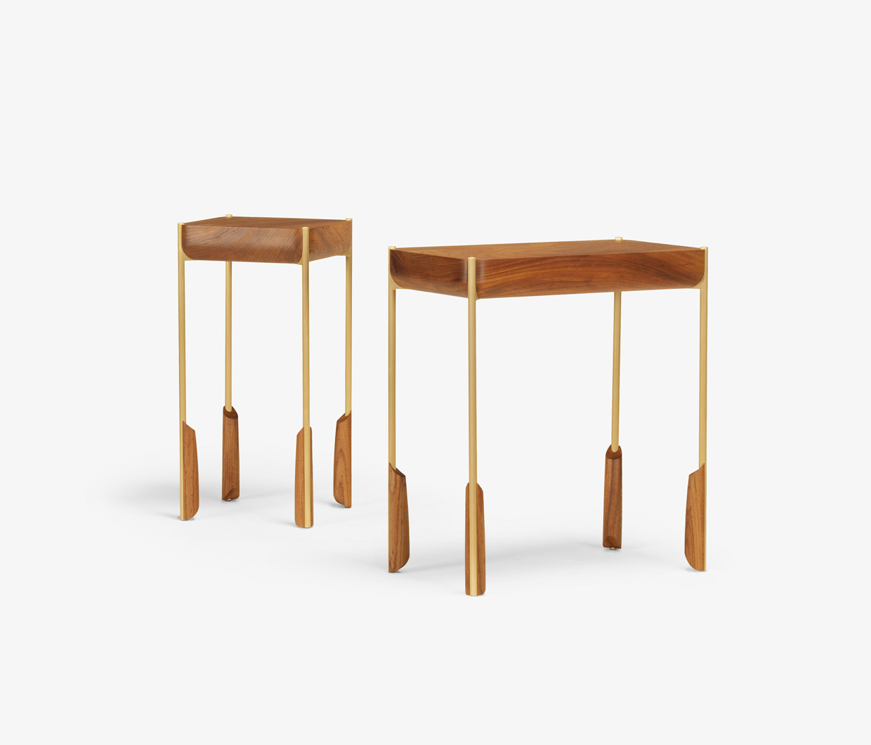 Altai side tables are offered in 2 standard models. Features include a solid 2.5” thick timber top with reverse bullnose edge profile and Altai’s signature leg design in metal and carved timber. This product is suitable for use in residential or design-driven contract environments. Please contact skram for custom size, material, and configuration options.