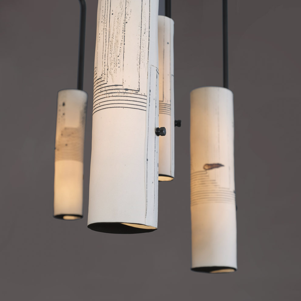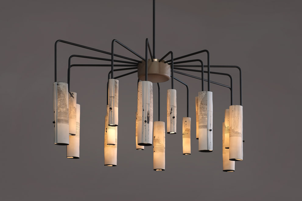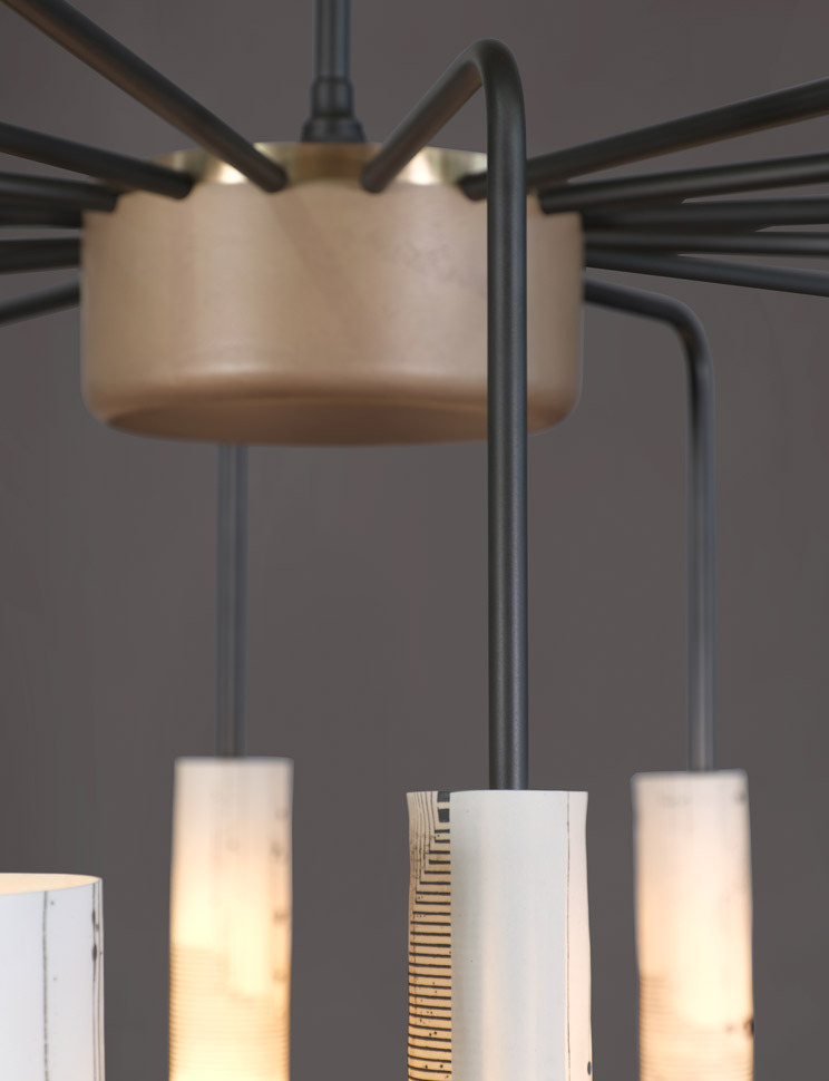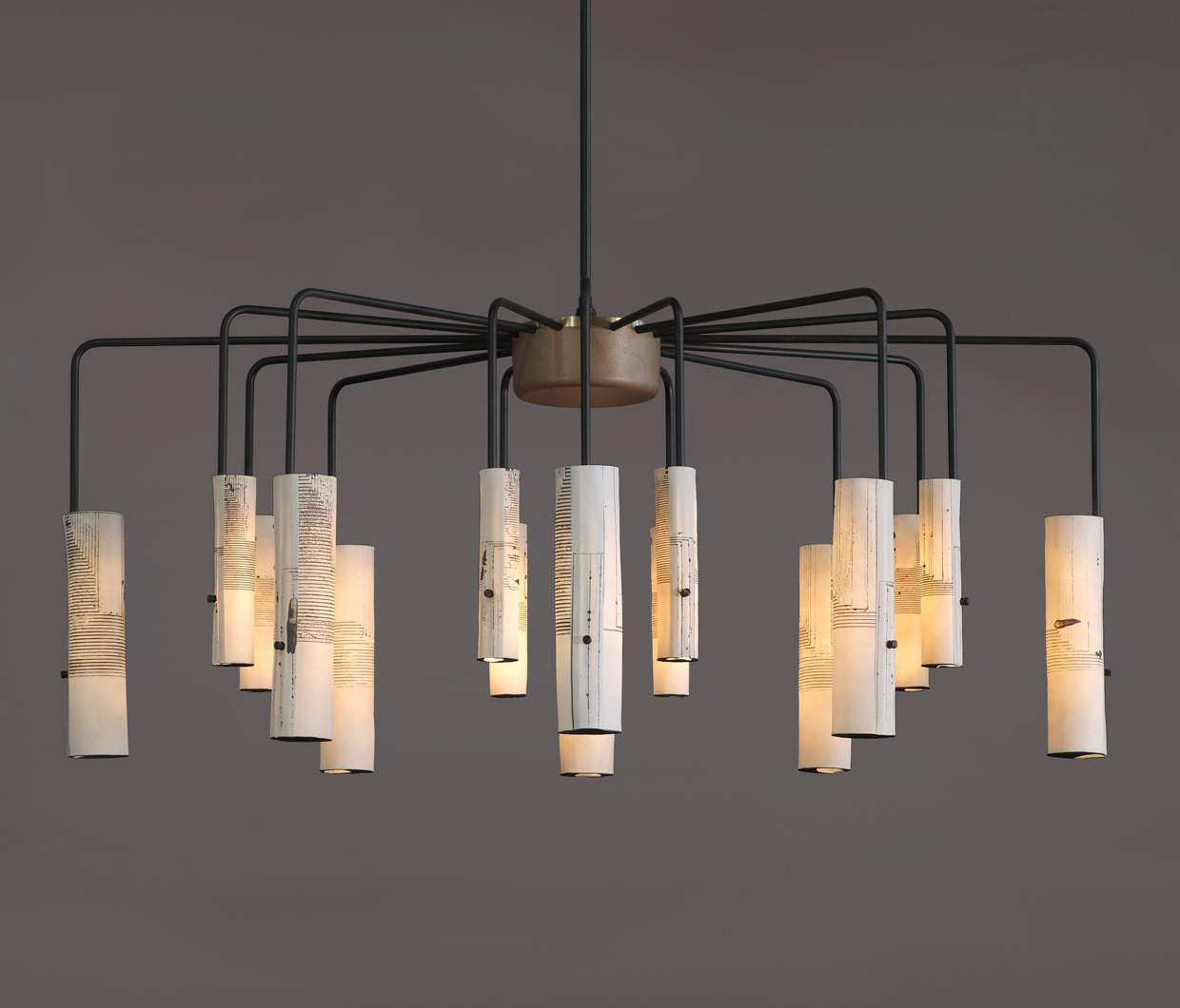 The arak 16-arm chandelier features individually hand-formed porcelain diffusers supported by blackened aluminum arms and a cast bronze hub. Arak products are a collaboration between skram lead designer jacob marks and north carolina artist mimi logothetis, whose innovations (in the transfer of hand-applied graphics to porcelain forms) are a focus of the exploration. 36 inch aluminum down-trod is standard; longer lengths available. Premium quality, high-efficiency L.E.D. light engines provide outstanding quality and output. All skram lighting products rate at 90+ CRI, 2700k and are UL listed. Additional specifications and details for this product are available in ‘downloads’ section. Professional installation required. Residential or contract use.