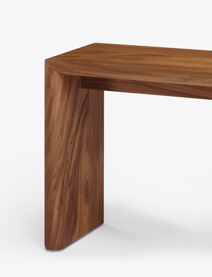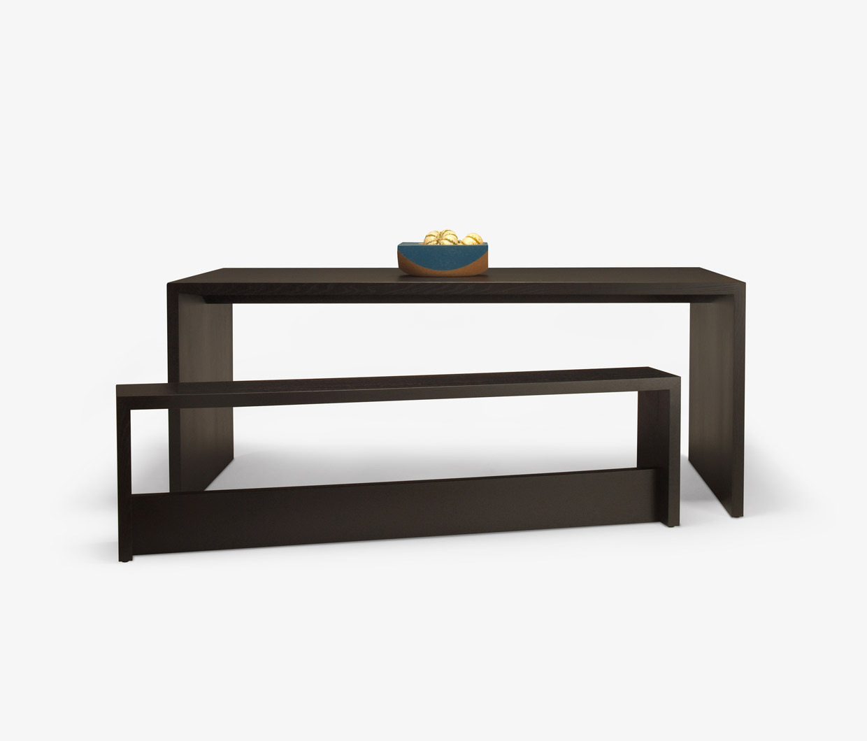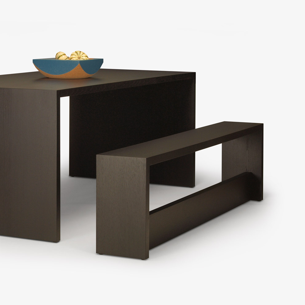 The lineground bench may be used independently or as a companion to the lineground community or farm tables. Features include solid timber construction throughout, mortise-and-tenon joinery, and mitered corners with matched seams/waterfall edges. Options include: Stretcher location at floor level or beneath seat (concealed). Additionally, clients may select edge profile as square or reverse bullnose. Specify timber and size from the options below. Custom materials and sizes available. Residential or contract use.