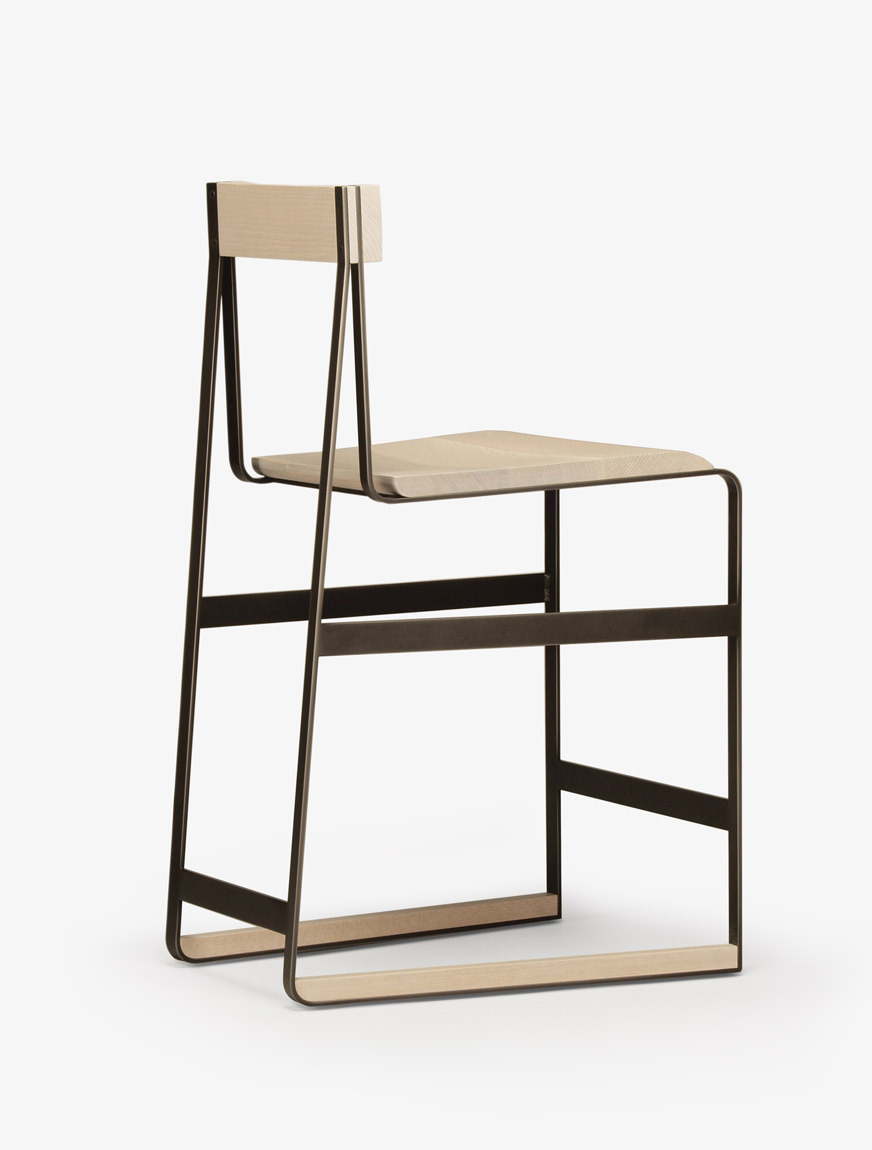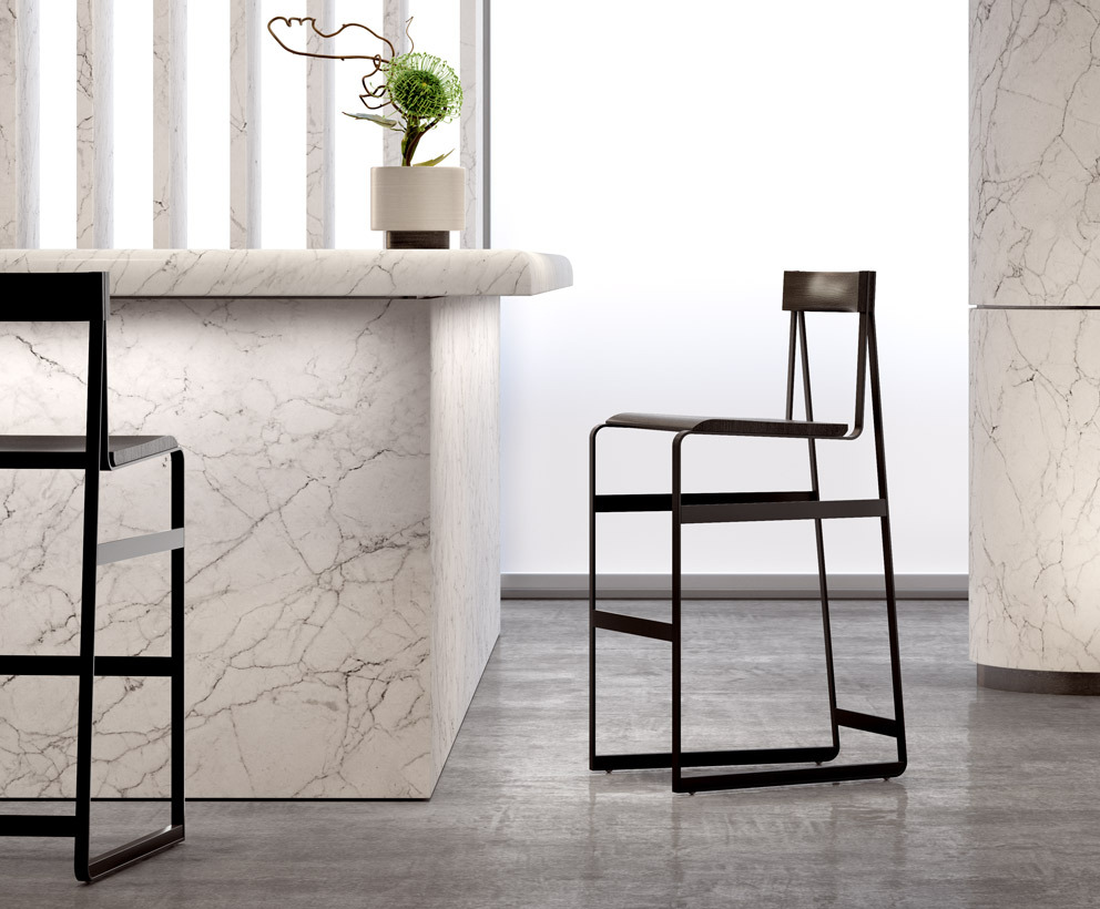 The piedmont collection no. 3 stools are available in 2 standard models for counter and bar height applications. Features include a formed steel frame and carved solid timber seat and back. The product is ergonomically-tuned and features contract-grade materials, finishes, and engineering. Standard skram timber and metal finishes available. Custom materials and finishes also available. Residential or contract use.