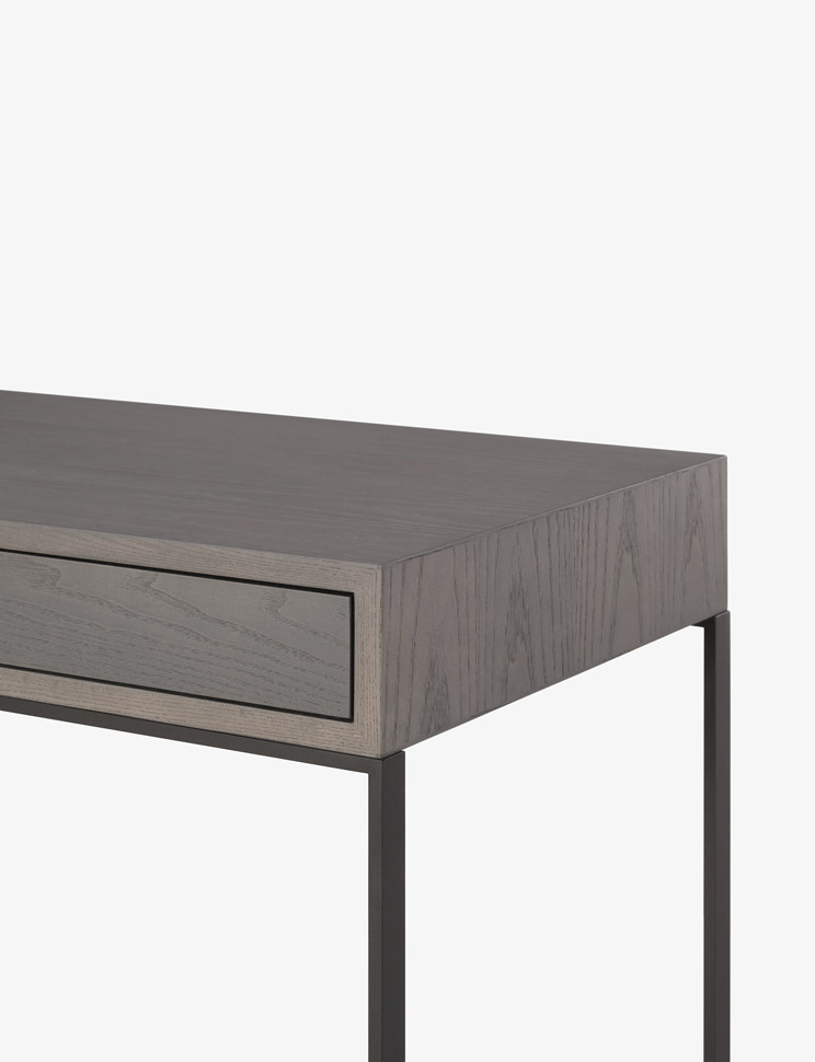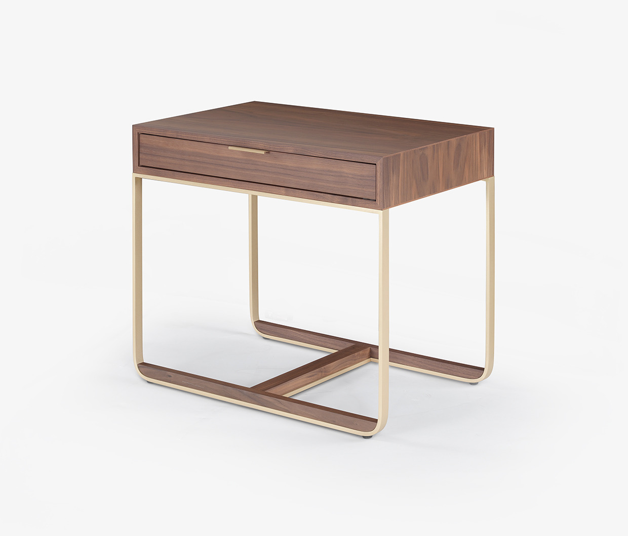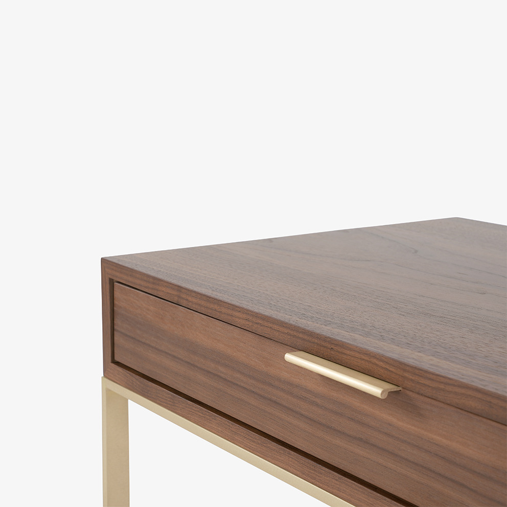 The piedmont side table no. 1 is offered in 2 versions: Standard (ST) or limited edition (LE). Both models feature a single drawer in hand-matched longwoods (ST) or burls (LE) with solid timber inlaid corners and edges. Drawers are solid timber with cork (ST) or burl-lined (LE) drawer bottoms riding on concealed runners and opening via low profile tab pulls. Contact skram for customization and limited edition options. Residential or contract use.